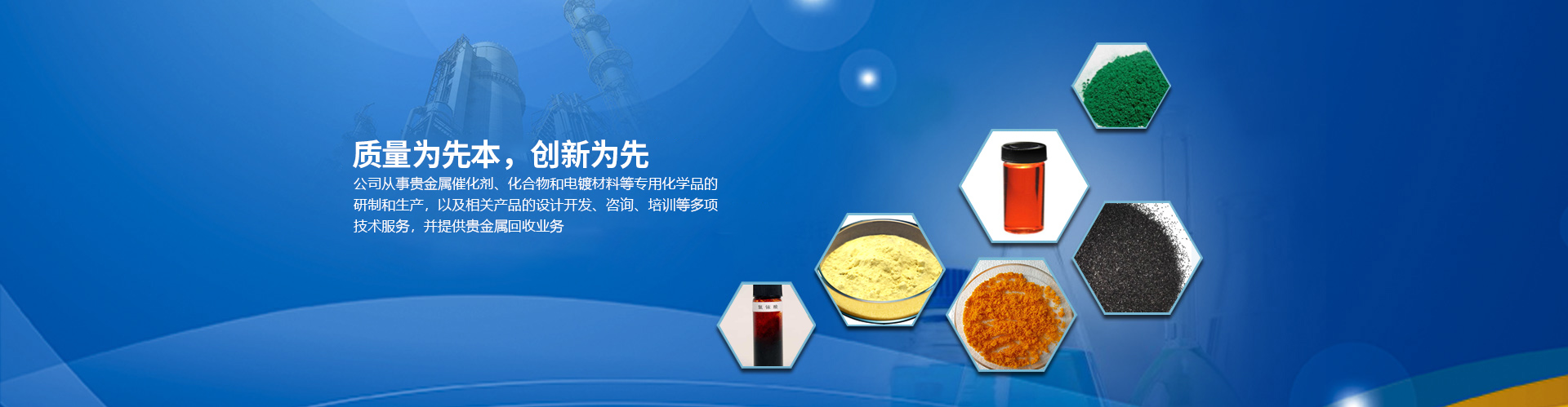 目前公司的主要產(chǎn)品有:醋酸鈀、氯化鈀、硝酸鈀、硫酸鈀、氯鉑酸、反-二(三苯基膦)二氯化鈀、四(三苯基膦)鈀、乙酰丙酮鈀;三氯化銠、辛酸銠、碘化銠、硝酸銠、醋酸銠、三苯基膦氯化銠、三苯基膦乙酰丙酮羰基銠、三苯基膦氯化銠、乙酰丙酮二羰基銠等,廣泛應(yīng)用于藥物合成、石油化工、精細(xì)化工和電鍍領(lǐng)域。本公司對所有產(chǎn)品進行嚴(yán)格檢測從定量和定性方面嚴(yán)把質(zhì)量關(guān),并通過ISO90001質(zhì)量體系認(rèn)證。